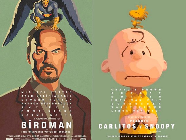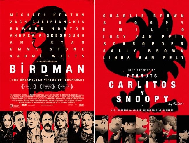 No se estrena hasta el 25 de diciembre en España pero, mientras tanto, 20th Century Fox ha difundido tres simpáticos póster de Carlitos y Snoopy. La película de Peanuts que homenajean a Birdman y El gran Hotel Budapest, dos de las grandes ganadoras del estudio en la ceremonia de los Oscars 2015.