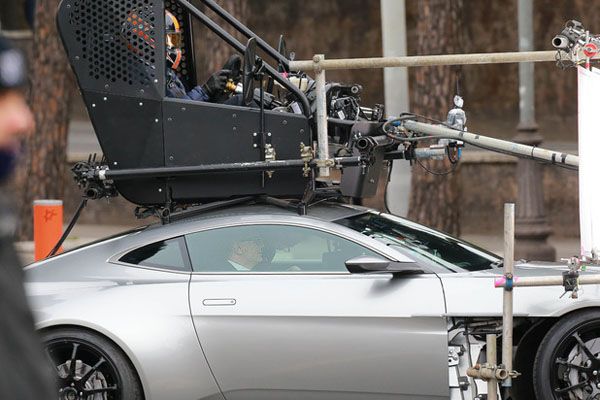 Esta vez, Daniel Craig conduce el nuevo Aston Martin DB10, diseñado exclusivamente para la película y que ya habíamos visto junto a una claqueta. El 'teaser' lanzado hace unos días ya mostraba el coche al lado de un Jaguar durante una persecución.