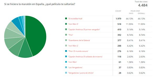 Pese a que el grueso de los votos se ha concentrado en la historia del gigante verde, todas las cintas han recibido apoyos negativos, hasta Vengadores: La era de Ultrón que no se ha estrenado y que precisamente es el motivo para este maratón. ¡Aquí tienes su tráiler!