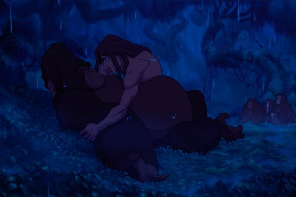 Cuando Tarzán se despide de Kerchak y éste le nombra líder de la tribu.