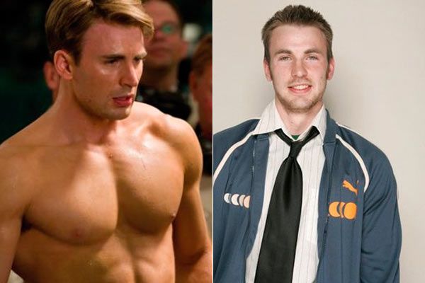 La transformación de Chris Evans para interpretar a Capitán América es una de las más espectaculares.