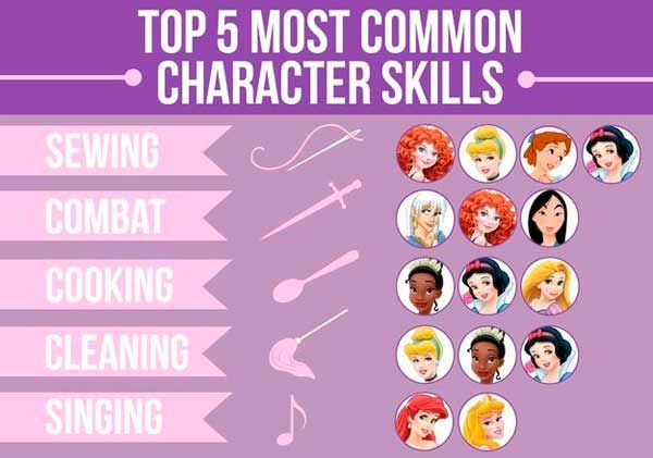 Buzzfeed ha elaborado un censo con todos los detalles sobre las protagonistas de la Casa de Mickey Mouse. Anterior1 - 12 - 23 - 34 - 35 - 46 - 57 - 78 - 89 - 910 - 1011 - 11Siguiente Coser, barrer y cocinar... estas parecen ser las habilidades más comunes entre las princesas. Sólo tres saben empuñar un arma.
