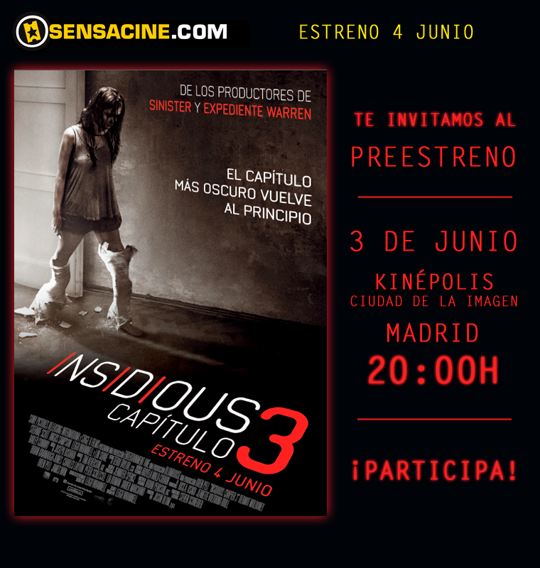 El 4 de Junio se estrena 'Insidious: Capítulo 3', la tercera entrega de la saga de terror que está haciendo temblar al mundo, ¡y tú puedes venir a verla antes que nadie!