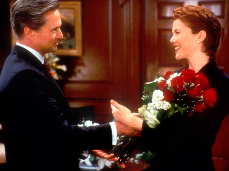 En esta selección hay acción, comedia, carisma, y amor, pero si hay una historia que cautivó a los espectadores fue la relación entre Andrew Shepherd (Michael Douglas) y Annete Bening en El presidente y Miss Wade.