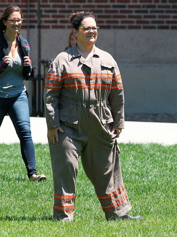 Cada vez que menos tiempo para ver la nueva cinta de Cazafantasmas, y no digamos para disfrutar de su tráiler. Pero por el momento hay que conformarse con las fotografías que van saliendo a la luz del set de rodaje. Hace poco pudimos ver los cuatro trajes colgados en una percha y el renovado equipo de protones, ahora People ha publicado una fotografía que muestra a Melissa McCarthy con su nuevo uniforme. Esta imagen fue tomada el pasado martes cuando las actrices y el equipo técnico acudieron al Emmanuel College de Fenway para rodar varias escenas dentro del edificio de administración.