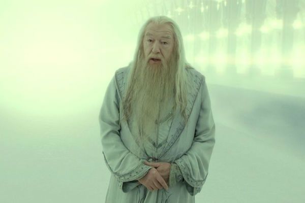 El actor que interpreta al profesor Albus Dumbledore en la franquicia afirma que su momento favorito es cuando su personaje aparece como un fantasma en la estación de trenes de King's Cross en Harry Potter y las reliquias de la muerte - Parte 2 y dice el nombre de Harry por última vez.