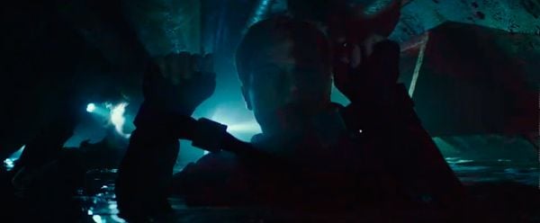 5. Peeta parece más recuperado en ese viaje por las alcantarillas del Capitolio, aunque ¡tiene las manos esposadas sobre su cabeza!.