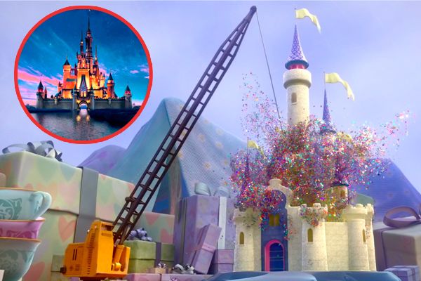 El mundo de los sueños de princesas de Riley es destruido entre confeti, una clara referencia al famoso castillo de Disney y al paso del tiempo de cuando los niños crecen y su afinidad al mundo de las princesas se destruye lentamente.
