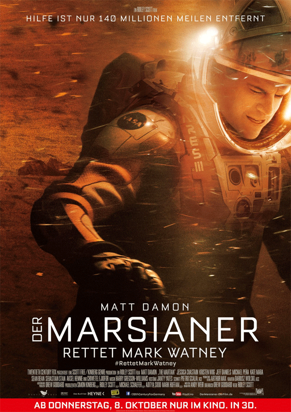 El próximo 16 de octubre llega a las pantallas de cine españolas la nueva aventura espacial de Matt Damon, Marte (The Martian). La promoción de esta película ya ha comenzado, por lo que Ridley Scott y compañía han decidido presentar dos nuevos pósters internacionales de la cinta protagonizada por Damon, Jessica Chastain, Kate Mara, Jeff Daniels y Chiwetel Ejiofor, entre otros.