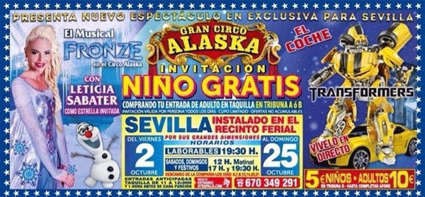 Tal y como señala el cartel, Sabater estará entre los días 2 y 25 de octubre en el recinto ferial de Sevilla junto al Gran Circo Alaska en un musical bajo el nombre de Fronze, que obviamente hace referencia a la famosa película, tanto por el mínimo cambio de letras como por la grafía. ¿Qué pensarán en los estudios Disney al conocer esta, cuanto menos, peculiar idea? Desde luego las redes sociales no se ponen de acuerdo en si reír o llorar con este remake, ¿y tú?