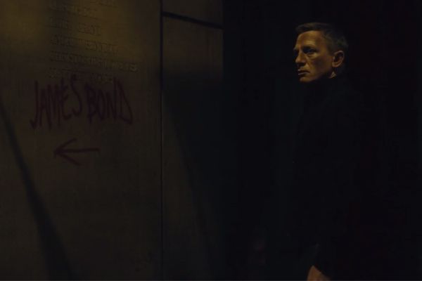 Una de las imágenes más metafóricas del videoclip es cuando Bond encuentra su nombre pintado en la pared, en la lista de los agentes muertos del MI6. Pero, si te fijas bien, la fecha de debajo se dirige a otro grupo de nombres de espías. ¿Es Bond responsable de esas muertes?, ¿es algo relacionado con Skyfall?, ¿está intentando S.P.E.C.T.R.E. manipularle?