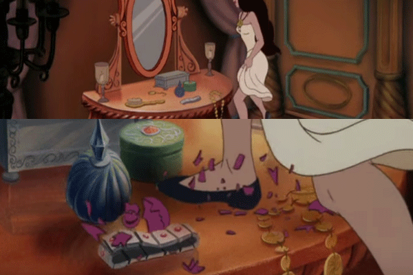 Otra escena de La Sirenita, pero en esta ocasión con Úrsula de protagonista. Cuando la bruja tiene apariencia humana bajo el nombre de Vanessa se la ve en un barca cantando una canción, en un momento dado, la joven decide romper un jarrón rosa que aparece de la nada con el único objetivo de ser destruido por ella, ya que en la siguiente escena vuelve a desaparecer.
