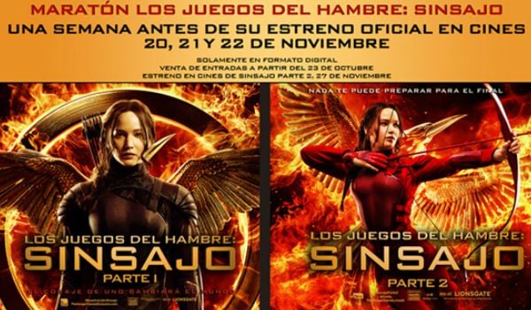 Si eres uno de los espectadores que no puede esperar hasta el 27 de noviembre para ver el desenlace de la historia de Katniss Everden (Jennifer Lawrence), tienes la oportunidad de asistir a un maratón especial limitado previo a su estreno que incluye las dos últimas entregas de Los juegos del hambre: Sinsajo – Parte 1 y Sinsajo – Parte 2.