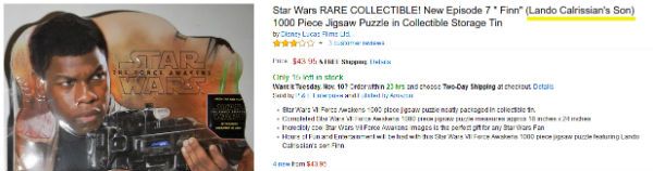 Hablamos de Finn, quien se ha convertido en uno de los puzzles del ‘merchandising’ de la cinta y en la descripción del objeto facilitada por la compañía de comercio electrónico se puede leer: "Finn (Hijo de Lando Calrissian)". Sí, el personaje interpretado por el actor John Boyega es descendiente del colega de Han Solo a quien dio vida Billy Dee Williams. Por el momento, ni Disney ni LucasFilm han hablado al respecto, pero entonces... ¿habrá un cameo del actor en el Episodio VII? Para eso habrá que esperar hasta el 18 de diciembre, fecha en la que se estrena la nueva entrega de La Guerra de las Galaxias.