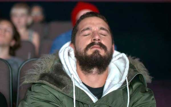 Más de 70 horas después, el cansancio del actor es evidente. A pesar de haber dormido durante alguna de sus películas, incluso de haberse tirado en el pasillo del cine a descansar, Shia LaBeouf no podía esconder su agotamiento. ¿Qué será lo próximo que haga?