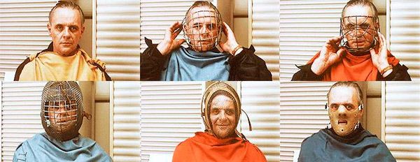 De las cinco que se puede ver en las capturas, sólo dos aparecieron en el filme. Además de la que todos conocemos, el doctor Lecter usó una máscara que no tapaba su cara, aunque la dejaba completamente aprisionada.