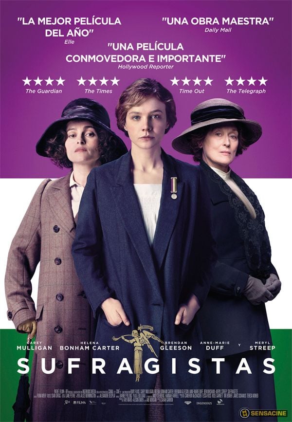 Después de pasar por Telluride, Londres y Toronto, entre otros certámenes, llega a España la película Sufragistas (18 de diciembre), uno de los títulos que más han sonado los últimos meses para los Oscars 2016. Por cortesía de nuestros amigos de DeaPlaneta, SensaCine te trae en EXCLUSIVA su póster final en español, con Carey Mulligan, Meryl Streep y Helena Bonham Carter como protagonistas.
