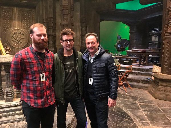 Scott Derrickson ha posado junto a los productores ejecutivos Stephen Broussard y Louis D'Esposito, pero quizás lo más interesante sea el fondo. Juzgando el decorado, y como señalan los chicos de CBM, podría tratarse de la 'Sancta Sanctorum' de Stephen Vincent Strange (Benedict Cumberbatch, Sherlock) en el 177A de Bleecker Street, o del hogar del Anciano (Tilda Swinton) en el Himalaya.