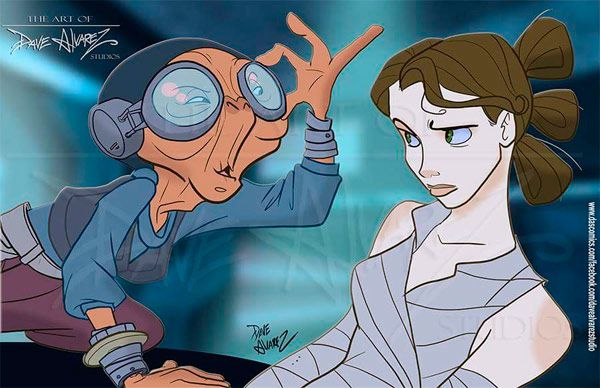 Alvarez trabaja para clientes como IDW, Warner Bros., DC Comics o Disney, entre otros, y eso se deja ver en sus fantásticas ilustraciones del Episodio VII, dirigido por J.J. Abrams. Puedes visitar su perfil oficial en Twitter, donde también puedes encontrar dibujos de Cazafantasmas, Las Tortugas Ninja o Zelda.