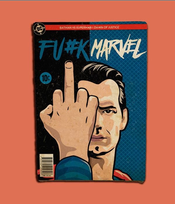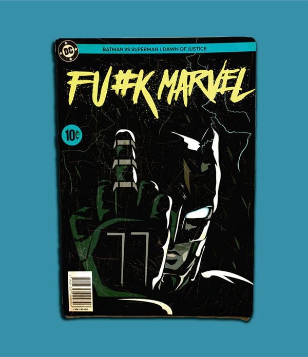 Tras el lanzamiento de los nuevos tráilers de las películas Batman v Superman: El amanecer de la justicia (23 de marzo) y Escuadrón suicida (19 de agosto), el usuario Luis AC ha decidido publicar una serie de diseños 'fan-made' a través del portal web Moviepilot. En ellos, los héroes y villanos más conocidos de DC Comics hacen un corte de mangas a Marvel. “He decido rendirles un homenaje como respuesta a las torpes películas de Marvel”, ha señalado el fan de los cómics.