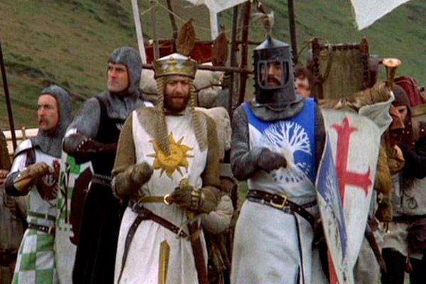 Además, los caballeros del Rey Arturo son mucho menos épicos que sus versiones en otras películas, lo que provoca situaciones más cómicas. Por ejemplo, gracias al bajo presupuesto, ahora podemos ver el gag que protagonizan los hombres que imitan el galope de los caballos con un par de cocos.
