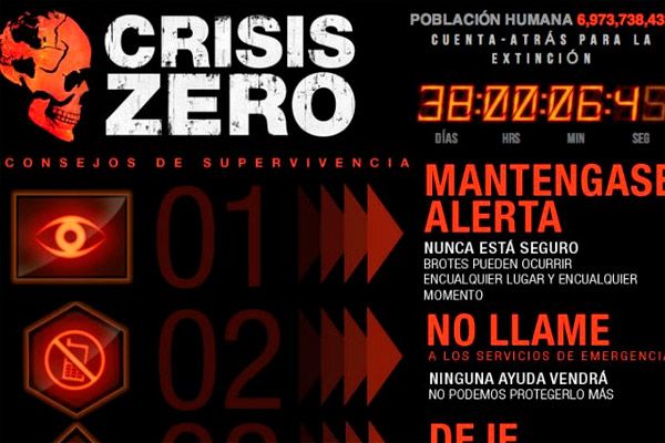 También lanzaron una web titulada Crisis Zero con consejos de supervivencia ante la extinción de la raza humana, como "No llame a los servicios de emergencia", "Mantengase alerta" y "Deje todo detrás".