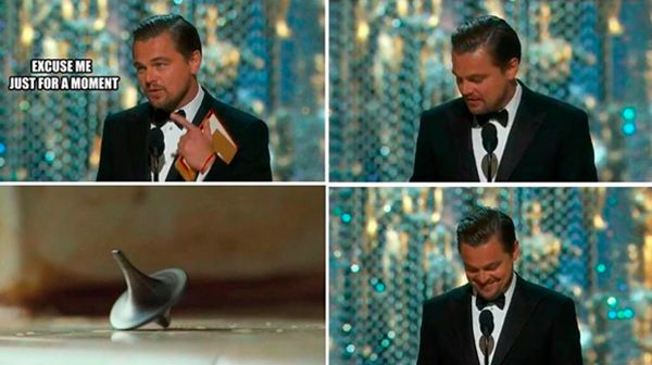 Leonardo DiCaprio ha ganado por fin el Oscar por su interpretación de Hugh Glass en El renacido película que, además del galardón en la categoría de Mejor Actor Principal, también se ha hecho con los premios de Mejor Director (Alejandro González Iñárritu) y Mejor Fotografía (Emmanuel Lubezki). En SensaCine te hemos contado cómo reaccionó Kate Winslet cuando DiCaprio ganó el Oscar, el gif con todas las veces que estuvo a punto de conseguirlo y hasta el gesto que ha revolucionado las redes sociales. Ahora, algunos montajes en Internet se preguntan si todo ha sido un sueño de Origen.