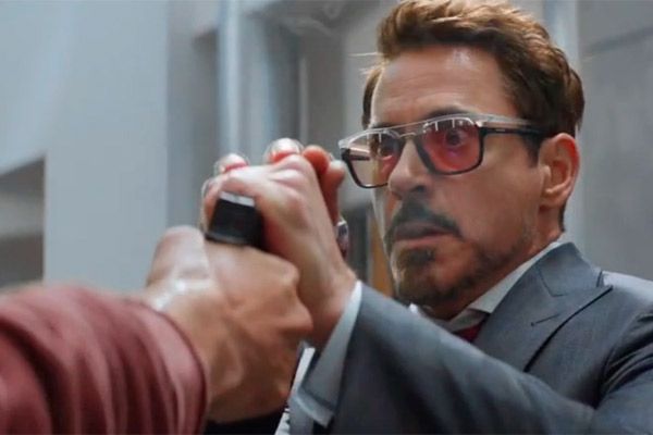 La cara de Tony Stark habla por todos los espectadores. Bucky pilla a Iron Man desarmado y este tiene que demostrar su destreza para evitar que le dispare.
