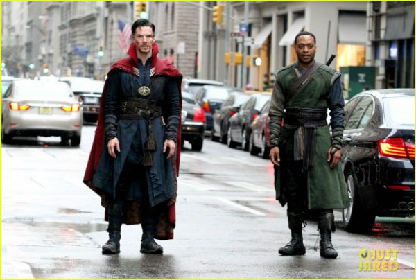 Benedict Cumberbatch sigue enfrascado en el rodaje de Doctor Extraño. El actor es el encargado de dar vida a Stephen Strange, uno de los nuevos superhéroes del Universo Cinemático de Marvel. Hace tiempo te enseñábamos un vídeo del intérprete junto a Chiwetel Ejiofor (Barón Mordo) y Benedict Wong (Wong) en plena producción de la cinta y, ahora, Just Jared y Daily Mail han publicado nuevas imágenes y un vídeo en el que Cumberbatch y Ejiofor aparecen grabando una escena de la película en las calles de Nueva York.