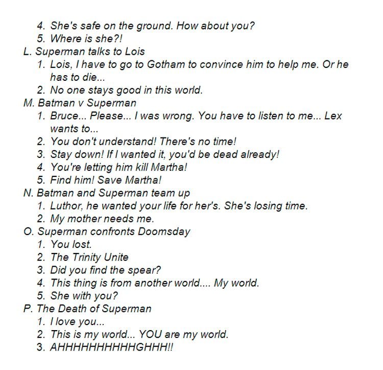 Un usuario de Reddit ha vuelto a ver la cinta de Warner Bros. y DC con el objetivo de contar todos los momentos en los que interviene Cavill. Y la conclusión es que el Hombre de Acero tiene un total de 42 líneas de diálogo. Aquí tienes todas sus frases.