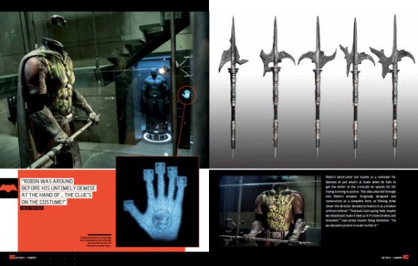 Hace poco, Snyder reveló la historia que se esconde detrás de la muerte de Robin y que no se muestra en El amanecer de la justicia y, ahora, podemos echar un vistazo completo al arma utilizada en anteriores batallas por el personaje gracias al manual técnico de la película titulado Batman v Superman: Dawn of Justice Tech Manual (vía Digital Spy).