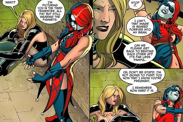 ¿Sabías que tiene un hijo? En la serie de cómics Injustice: Gods Among Us, Harley Quinn está luchando contra Canario Negro cuando nota que su contrincante siente las náuseas típicas de los primeros meses de embarazo y se sientan a descansar. En ese momento admite que tiene una hija, Lucy, la cual tiene cuatro años y vive con la hermana de Harley. También reconoce que el Joker no sabe de la existencia de la pequeña y es que su trabajo es tan importante que no notó que se había ido durante un año.