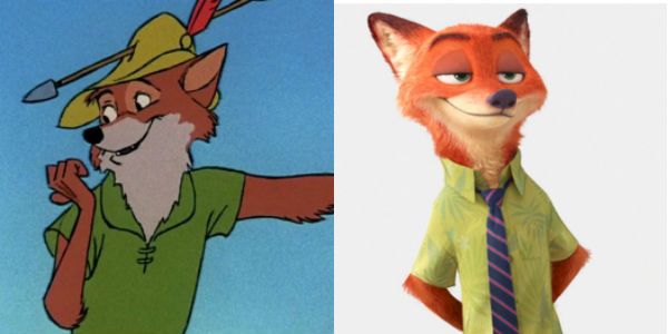El notable parecido que hay entre el zorro Nick Wilde y el Robin Hood que Disney nos presentó en 1973 con la película homónima dista de ser una casualidad. Y es que los directores de Zootrópolis habían pensado originalmente en una versión moderna de la historia del Príncipe de los Ladrones, en la que Nick ya tenía un aspecto muy similar al que acabó teniendo.