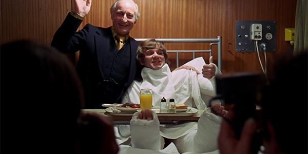 Nuevamente, una voz en off clausura una obra maestra, pero en este caso de un modo más inquietante. Alex DeLarge (Malcolm McDowell) había sido sometido a un tratamiento inhumano para erradicar su propensión a la violencia y, al salir al mundo exterior, sus semejantes habían aprovechado su nueva naturaleza para despreciarle y casi acabar matándolo. Al final del filme de Stanley Kubrick, Alex se encontraba en un hospital medio muerto y rodeado de los medios de comunicación para, de una manera muy cínica, afirmar haberse curado, y que su terapia había sido todo un éxito.