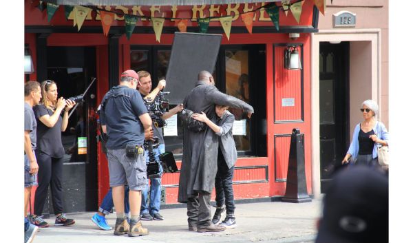 Al parecer, por el abrazo que se ve en la imagen, no es la primera vez que estos dos personajes se ven las caras. Sin embargo, el medio antes citado indica que el equipo del rodaje se referían a esta escena como "el primer encuentro". Como sabrás, la película dirigida por Nikolaj Arcel no es la adaptacaión del primer libro de la saga escrita por Stephen King. Por el momento, no hay nada confirmado, pero muchos creen que se trata del segundo libro titulado La llegada de los tres. Eso explicaría que Roland ya conociese al joven Jake y, a juzgar por los taxis de color azul, este encuentro podría ocurrir en una de las diferentes Tierras que el protagonista ha visitado en anteriores aventuras.