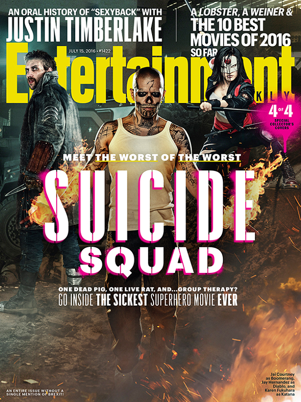 El 5 de agosto se estrena en nuestro país la nueva cinta del universo cinematográfico de DC, Escuadrón suicida. Una cinta protagonizada por los villanos de la compañía, y que desde que comenzasen los rumores sobre ella se convirtió en la más esperada por el público. A un mes del estreno, en EW han decidido dedicarle su número especial de esta semana con cuatro portadas alucinantes protagonizadas por los principales personajes de la cinta.