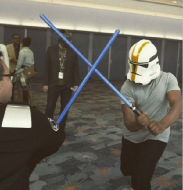 EXTRA: Pese a que esto no sucedió en la Comic-Con de San Diego, si tuvo lugar en otra convención, en concreto en la Star Wars Celebration. Y es el pasado año, John Boyega decidió disfrutar de ella completamente vestido de soldado imperial.