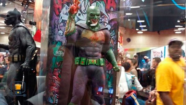 Después del buen rendimiento en taquilla de Batman v Superman -872 millones de dólares-, el Universo Cinemático de Warner Bros. y DC Comics prosigue con el estreno de Escuadrón suicida (5 de agosto). En los adelantos del filme de David Ayer (Corazones de acero) hemos podido ver al Joker de Jared Leto con varios atuendos y ahora, en la Comic-Con de San Diego, ha aparecido uno de lo más curioso: un traje de Batman con los colores del Príncipe Payaso del Crimen, como ha recogido Cinema Blend.