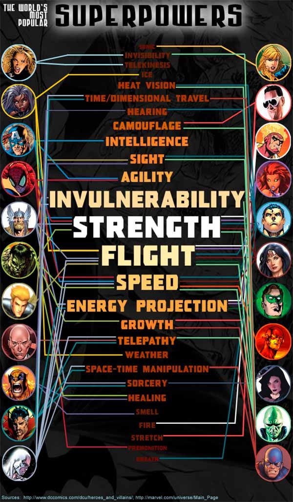 ¿Sabes cuál es el poder más popular entre los superhéroes? Parece que todos tienen superfuerza, pero mira esta infografía para descubrir cuáles son los más comunes o los más raros.