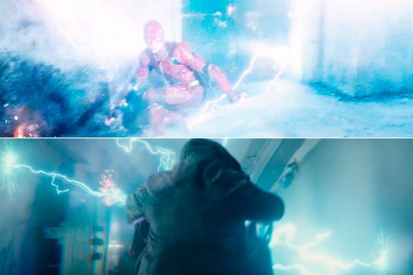 En la imagen que encontrarás a continuación, puedes comparar la estela de luz que deja Flash en el tráiler de La Liga de la Justicia (arriba) y la que aparece en el de Escuadrón Suicida (abajo).