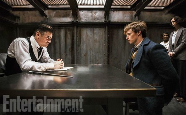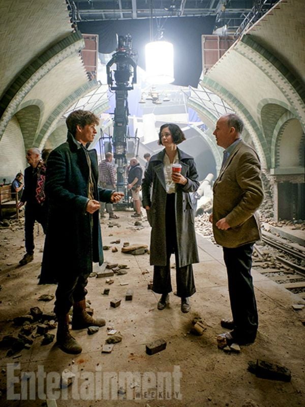 En la primera fotografía aparece el grupo protagonista liderado por el magizoólogo británico Newt Scamander interpretado por Eddie Redmayne. Le acompañan Katherine Waterston en el papel de Tina, Alison Sudol como Queenie y Dan Fogler como el muggle -no-maj en América- Jacob. En la segunda, el protagonista ha sido arrestado y está siendo interrogado por Percival Graves, un importante auror y director de seguridad del MACUSA interpretado por Colin Farrell. En la última, Redmayne y Waterston hablan con Yates detrás de las cámaras.