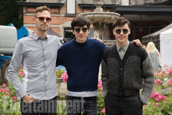 Ransom Riggs, Butterfield y Finlay MacMillan (Enoch) posan en el 'set' de rodaje de Bélgica.