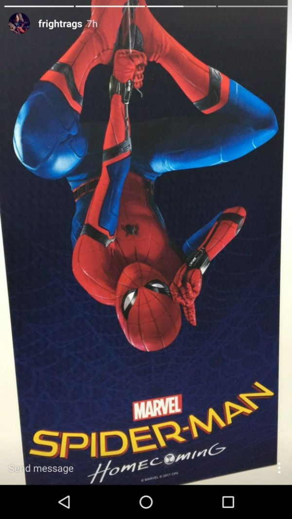 "Frightrags" es el seudónimo de la persona que ha publicado el primer vistazo al cartel promocional de Homecoming. Este usuario ha tenido acceso a la imagen gracias a su participación en "Magic Las Vegas", un evento que tiene una duración de tres días y reúne a estudios cinematográficos de todo el mundo para exhibir productos promocionales de sus próximas películas. Aunque aún no se ha confirmado que sea el póster definitivo de Spider-Man, este incluye el copyright de Marvel y una imagen nunca vista del superhéroe, por lo que podría ser verdadero.