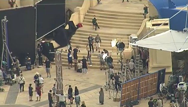 El comienzo de un rodaje suele levantar gran expectación entre los fans, sobre todo si es el de una película de Marvel. Son muchos los que buscan una imagen interesante para compartirla con todo el mundo y hacerse virales. El rodaje de Thor: Ragnarok comienza este lunes en la ciudad australiana de Brisbane, capital de Queensland, y ya han salido a la luz las primeras instantáneas de los actores dentro del 'set'. La calidad no es la mejor posible, pero varias imágenes tomadas del lugar pueden haber revelado a Cate Blanchett ya caracterizada como la villana Hela. Aunque le falta el tocado característico del personaje, se la puede ver vestida de verde y sentada ante una muchedumbre de extras asgardianos.