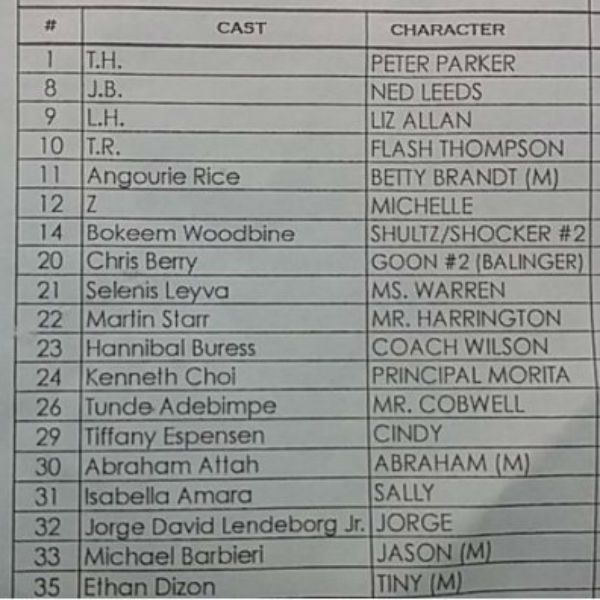 Hace unas semanas, se filtró el casting de la cinta dirigida por Jon Watts y, aunque algunos dudaban de su veracidad, lo cierto es que las palabras de Buress coinciden con ella. También con lo que que se rumoreaba sobre el papel de Tony Revolori y que te econtamos en esta noticia. Puedes ver la lista a continuación.