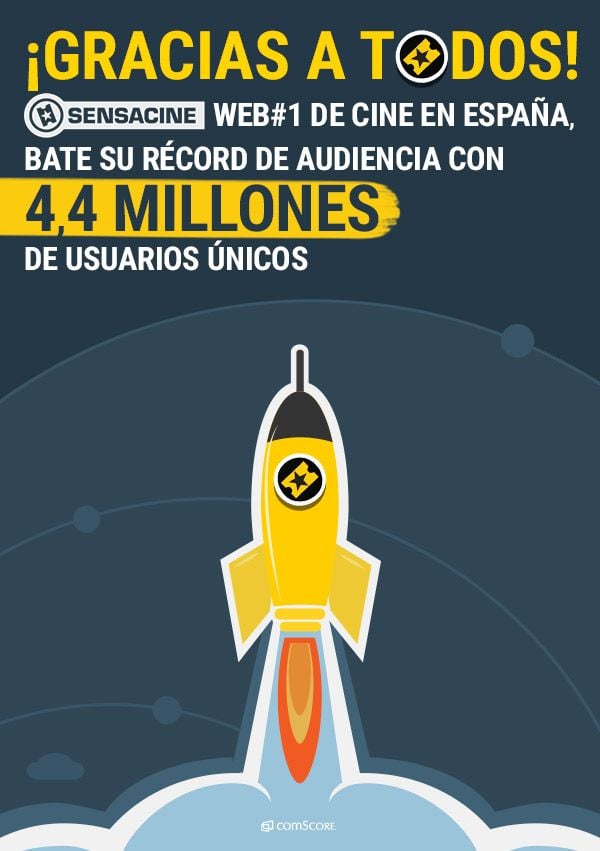 SensaCine se consolida como portal de cine más visto en España. La web, perteneciente al grupo francés de entretenimiento Webedia, se ha posicionado nuevamente, el pasado mes de agosto, en el primer puesto en el ranking de medios cinematográficos elaborado por comScore (empresa de medición de audiencia en Internet). Según los datos ofrecidos por la compañía, SensaCine ha alcanzado los 4,4 millones de usuarios únicos -1,3 millones más que el segundo site del panel-, batiendo así un nuevo récord desde que iniciara su andadura en España, a mediados de 2008.