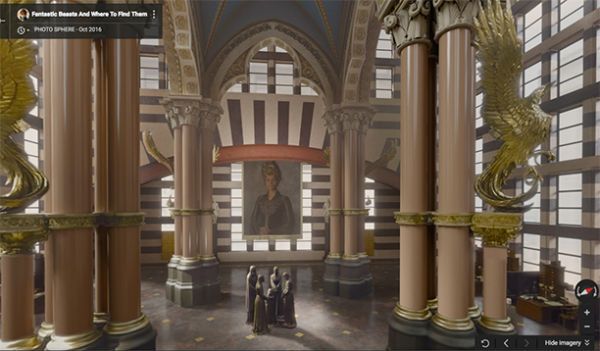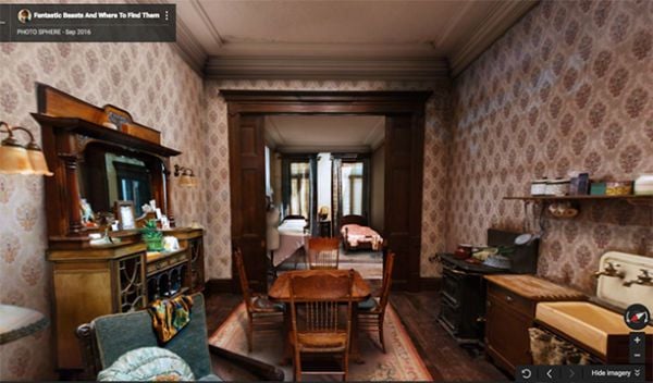 Gracias a esta aplicación puedes hacer búsquedas como "Goldstein Apartment" y obtener buenos resultados. El apartamento de Tina y Queenie Goldstein, el Congreso Mágico de Estados Unidos (MACUSA), el Banco Nacional Steen, un bar clandestino llamado 'The Blind Pig'... Todos estos escenarios son importantes para el transcurso de la historia y están disponibles a través de la Red. La fotografía que encontrarás sobre estas líneas se corresponde con el equivalente al Ministerio de Magia en las películas originales, mientras que las siguientes imágenes muestran el bar antes citado y el apartamento donde viven las amigas de Scamander.