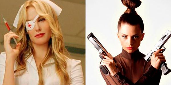 - Indumentaria: Un mono negro muy ajustado, dos pistolas, un moño alto y pintalabios rojo.