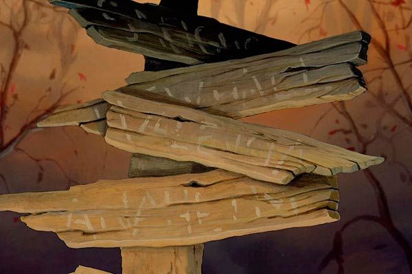 12. El poste que mira el padre de Bella, Maurice, antes de caminar en el bosque también señala: Valencia, Anaheim y Burbank.
