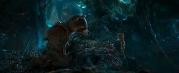 Uno de los momentos más divertidos del tráiler es, sin duda alguna, este. En él, Rocket (Bradley Cooper) explica a Bebé Groot cómo funciona una bomba, pero el adorable personaje parece no comprender qué botón no tiene que pulsar si no quiere que mueran todos. Finalmente, el personaje arbóreo decide coger el explosivo y largarse con él al grito de... Sí, lo has adivinado: "¡Yo soy Groot!".